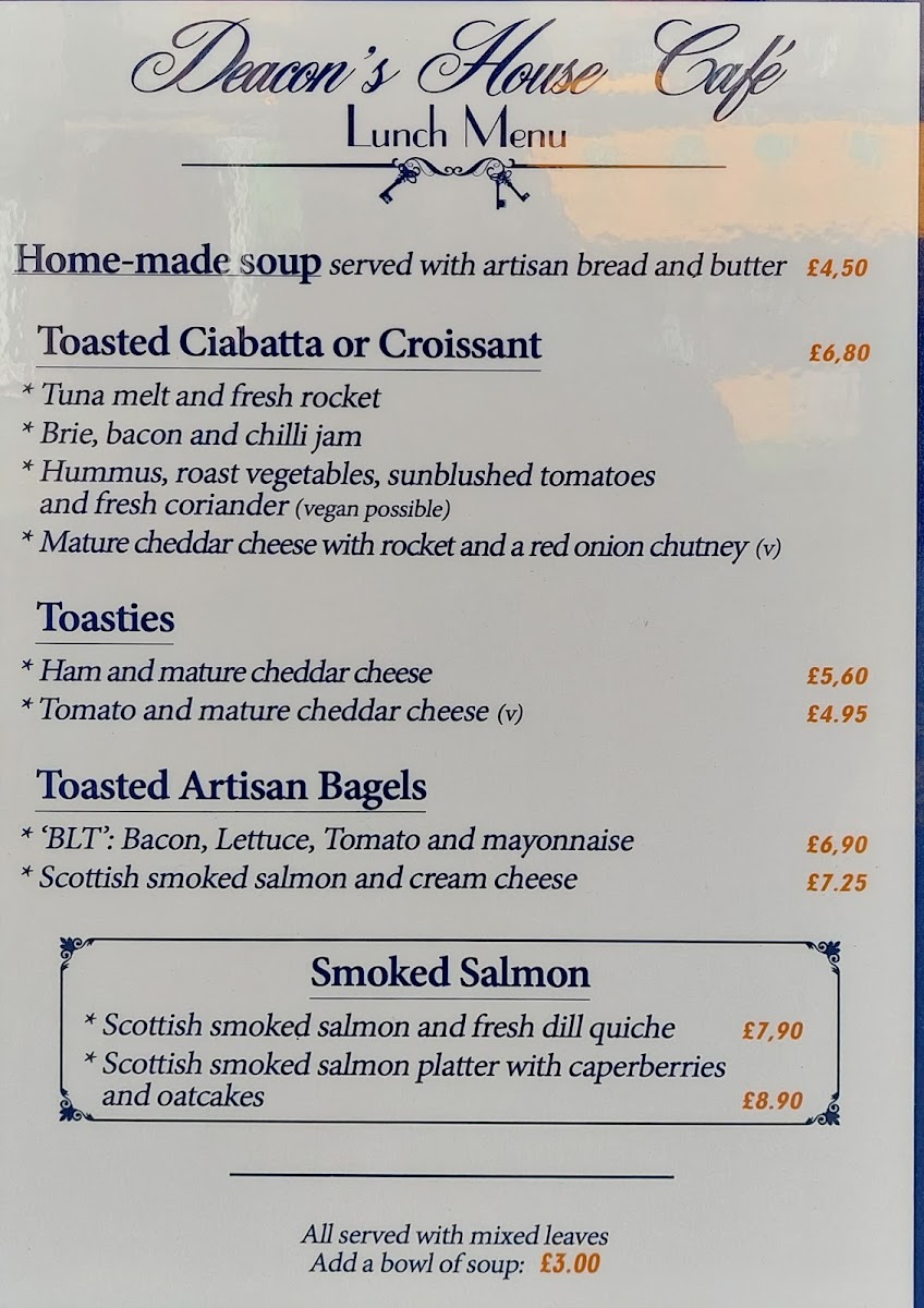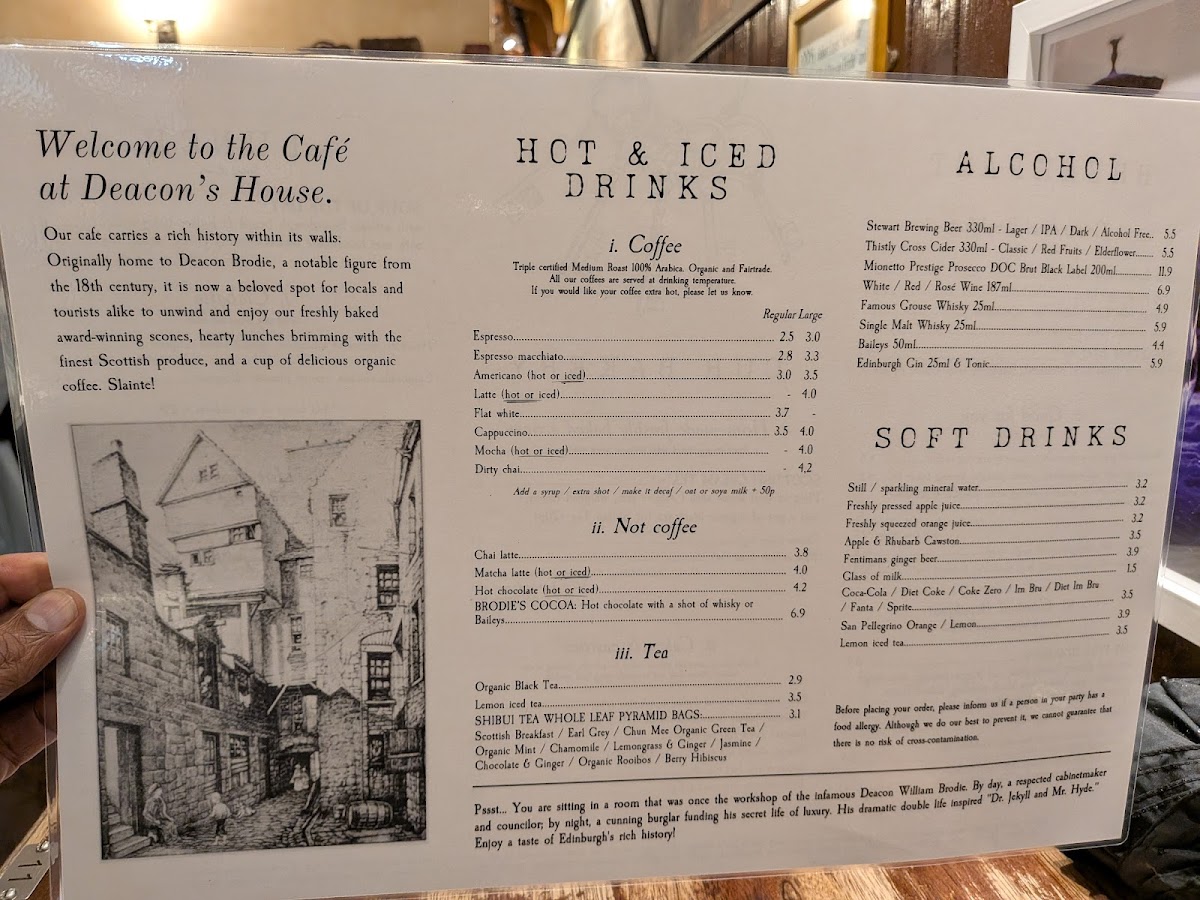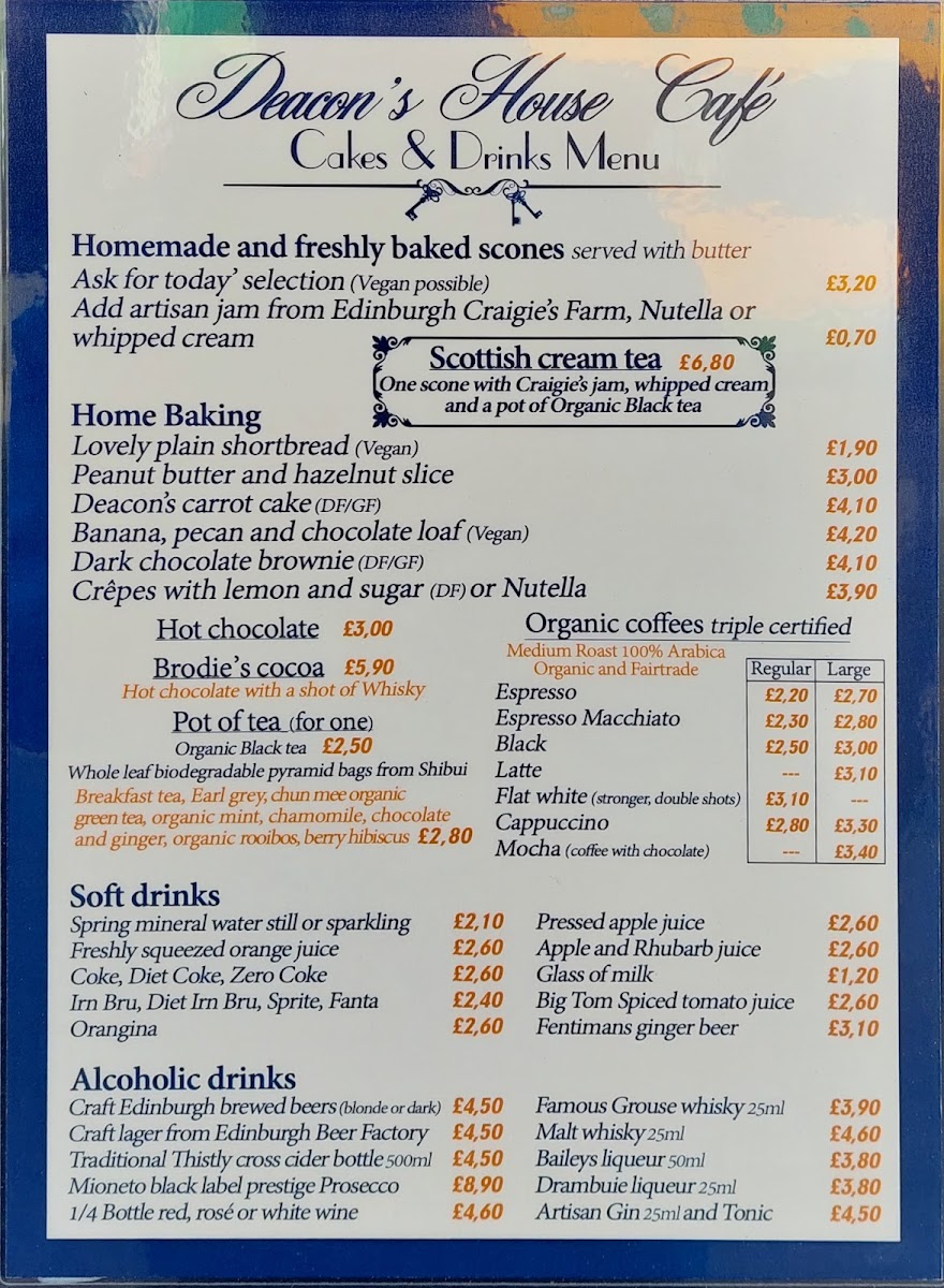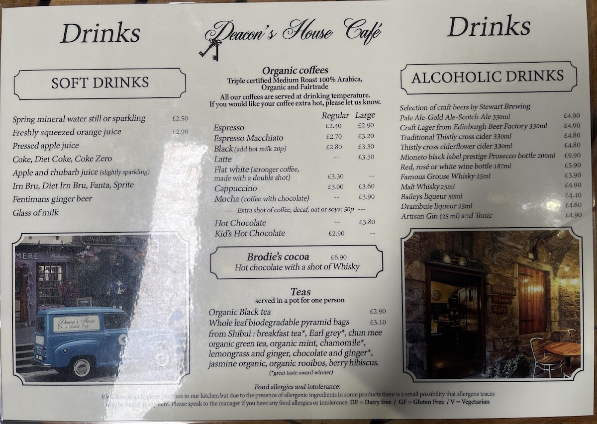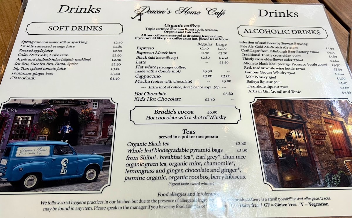 Deacon's House Cafe offers a thoughtfully simple menu that balances casual, comforting bites with carefully brewed drinks. Whether you're stopping by for a relaxed breakfast, a light lunch, or an afternoon tea, the selections provide a familiar yet distinctive taste of Scottish-inspired café fare.